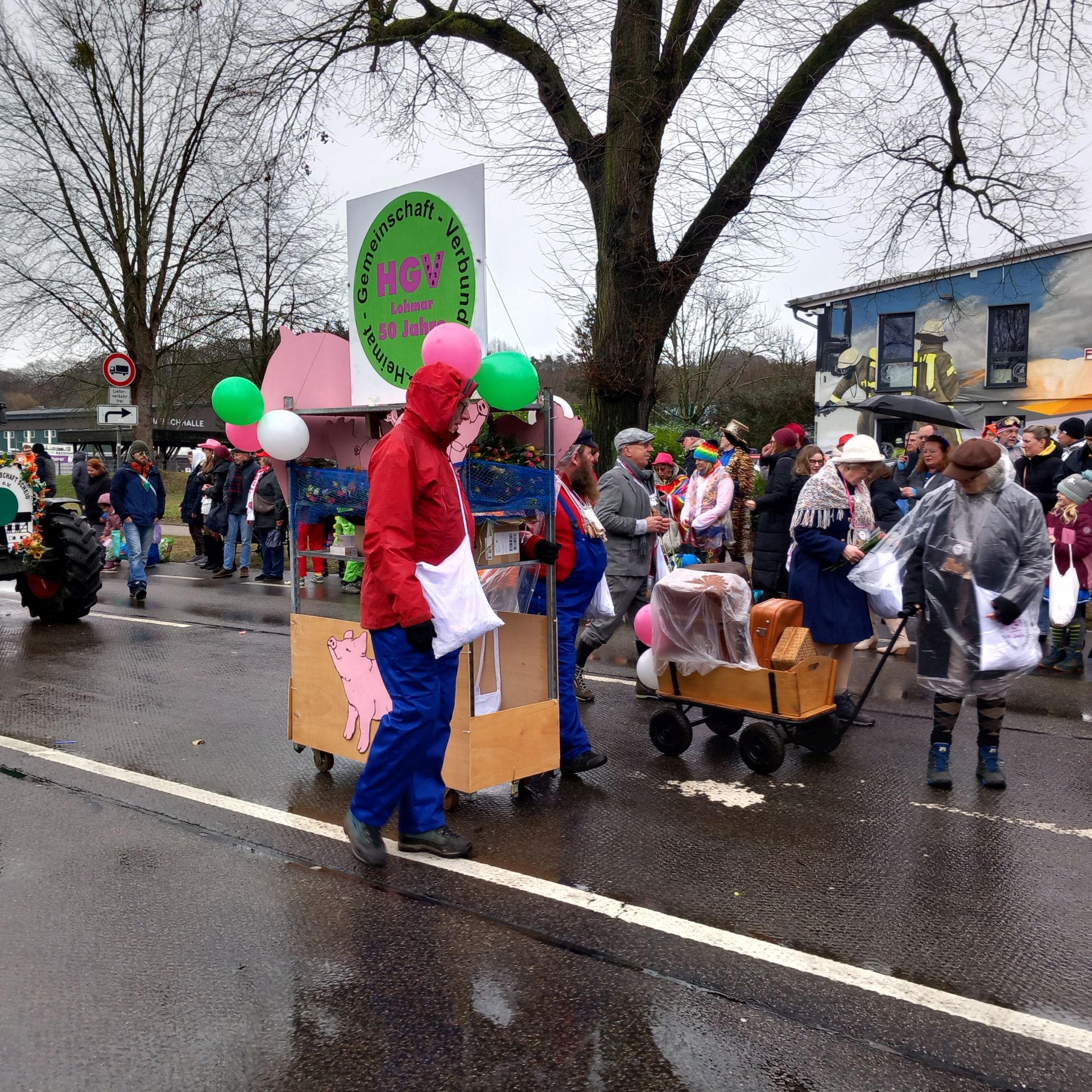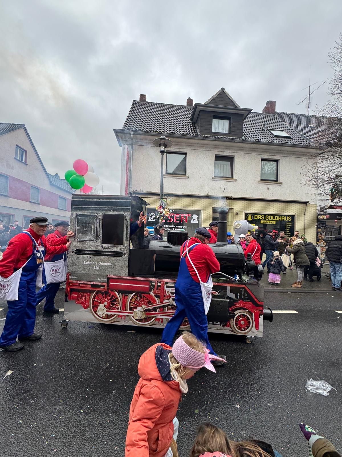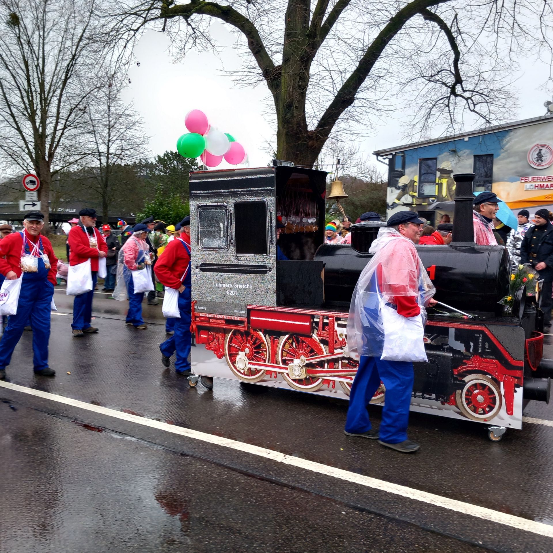 50 Jahre Heimatverein Lohmar e.V. (HGV), da sollte es schon ein besonderes Motto für den diesjährigen Karnevalszug sein. So zogen dann am Montag, dem 16. Februar 2026 insgesamt 27 gut gelaunte Mitglieder des HGV mit der alten Lokomotive „Luhmer Grietche“ und in bunten Kostümen als Jim Knopf, Schaffner, Bahnreisende oder Fahrkarte vom Bahnhof Luhmer-Land im Rosenmontagszug durch Lohmar. Es war uns dabei ein großes Anliegen, auch hier den historischen Hintergrund des Vereins in den Mittelpunkt zu stellen.