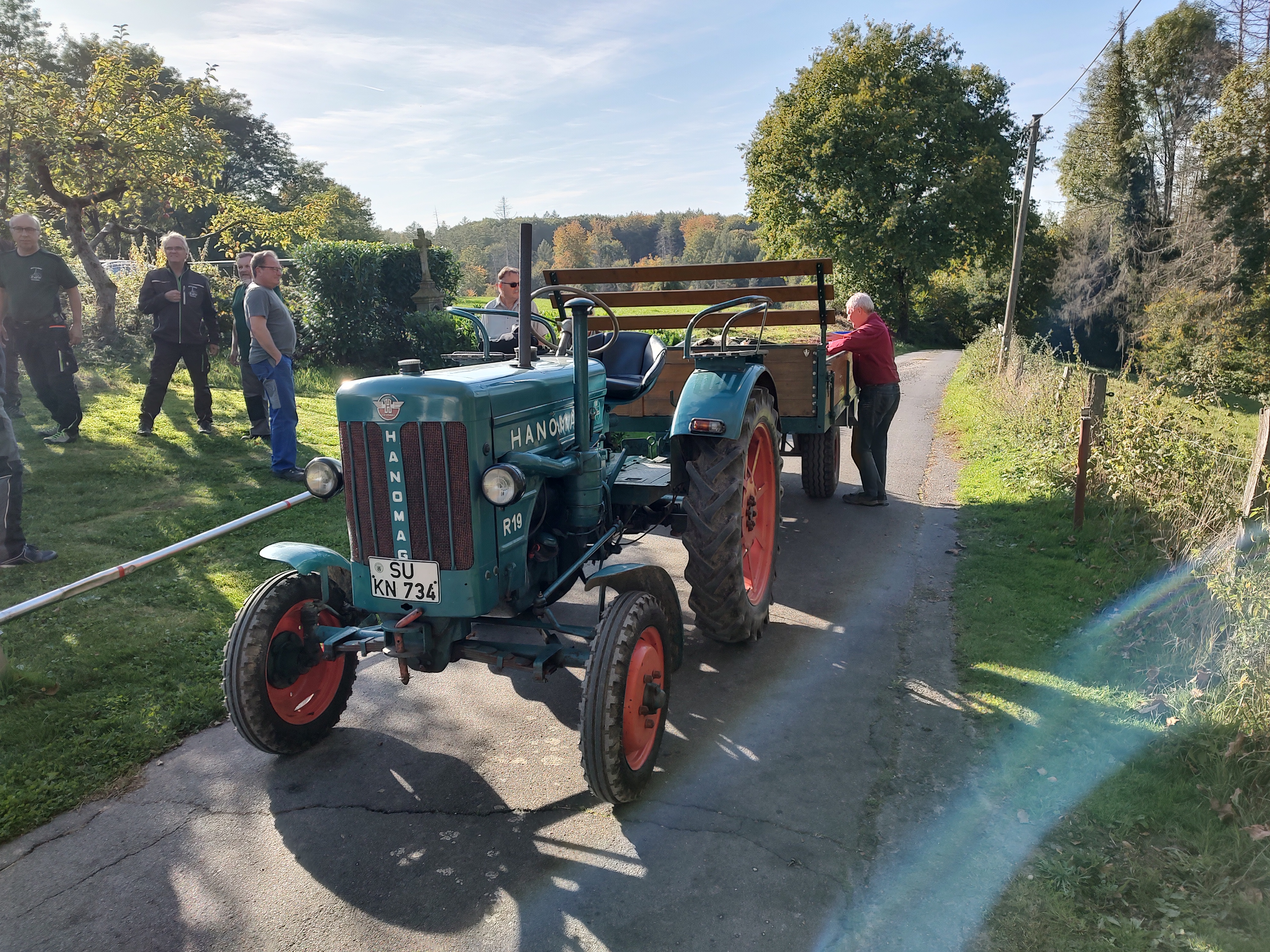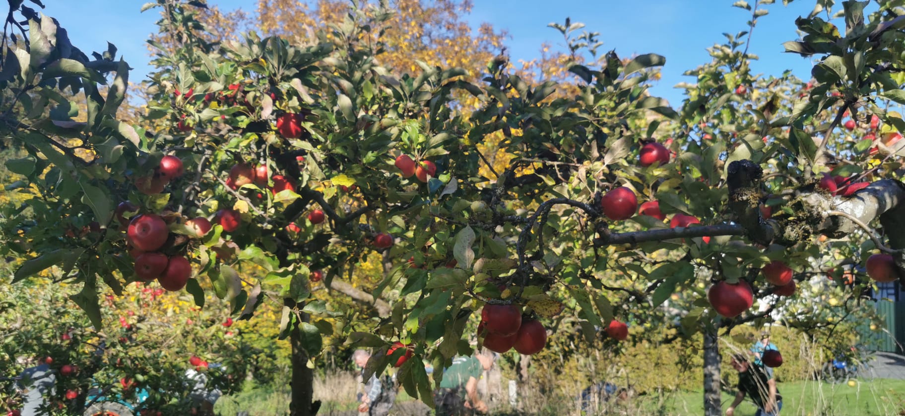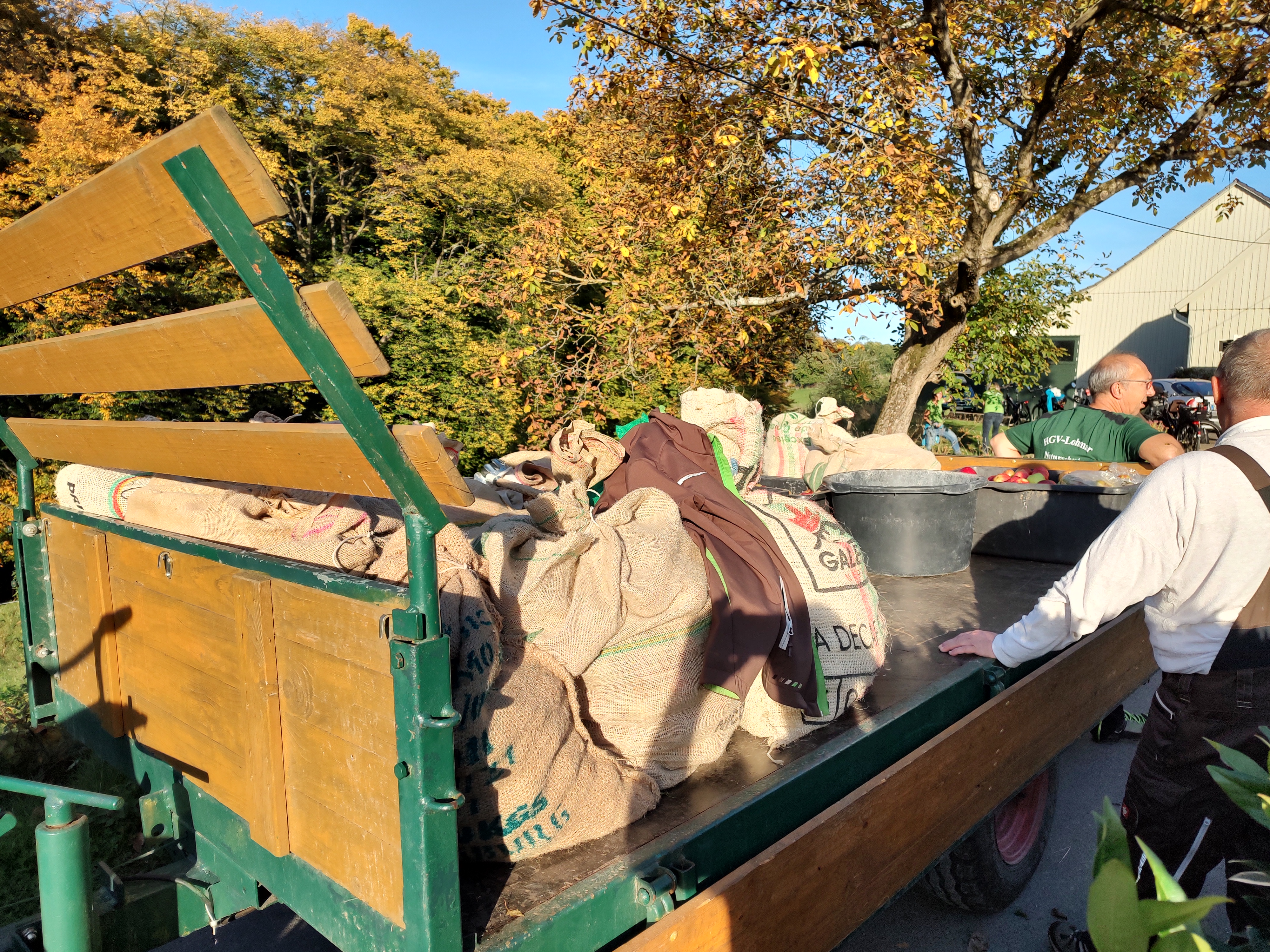 Am 7. und 8. Oktober 2022 war es endlich soweit: Die Mitglieder der Naturschutzgruppe des Heimatverein Lohmar e. V. (HGV) trafen sich zur Apfelernte auf einer Obstbaumplantage nahe Lohmarhohn. In einem ersten Schritt wurden bei sonnigem, trockenem Wetter am Freitag, dem 7. Oktober 2022 die Äpfel gepflückt. Die Bäume der Obstplantage wurden bereits im Februar 2022 beschnitten und im Juni 2022 durch einen weiteren, kleinen Sommer-Pflegeschnitt der Ernteerfolg optimiert. Denn: Eine gute Apfelernte hängt von einem gesunden und gut geschnittenen Apfelbaum ab. So konnte dann auch nach zwei Stunden Teamarbeit ein gut beladener Traktor-Anhänger voller rotbackiger Äpfel zum Vermosten gefahren werden.