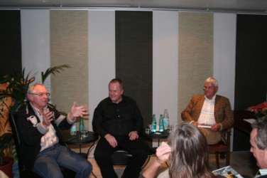 In diesem Jahr konnte Willi "Ente" Lippens zusammen mit Dietmar Schott für eine Autorenlesung in der Buchhandlung LesArt gewonnen werden. Der Raum war schnell gefüllt und die letzten hatten nur noch Stehplätze, aber es hat sich gelohnt. Dietmar Schott und Willi Lippens spielten sich gekonnt die Geschichten aus dem Buch "Ich danke Sie" zu. Natürlich spielte Willi Lippens dann auch einige Zenen unnachahmlich vor, wie er Berti Vogts als Spieler zur Verzweiflung gebracht hatte.