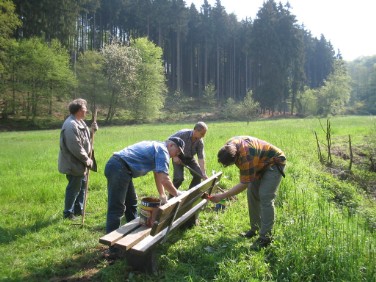 Wie jedes Jahr machen sich 2 Gruppen mit den Traktoren auf, um die Bänke abzuschleifen und neu zu streichen. Für 2 Bänke wurden auch neue Standorte gefunden.