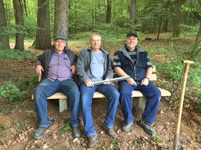 Probesitzen auf der neu errichteten Bank an der 12 Aposteln-Buche