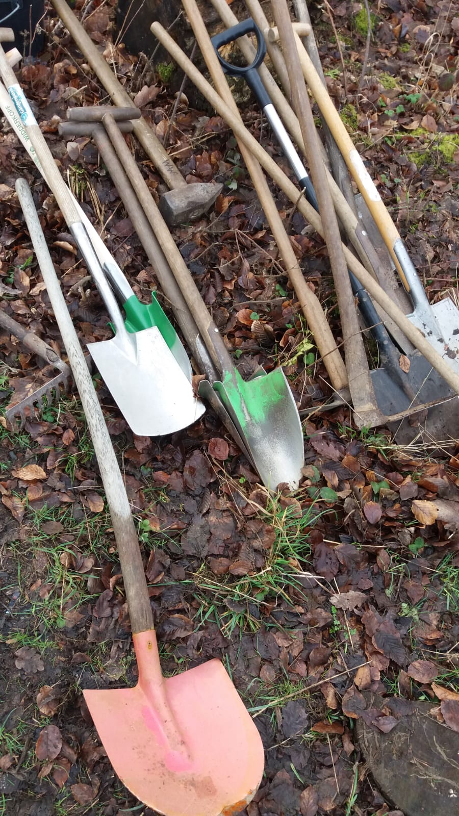 - 20 Hohlspaten, Spaten und Fäustel