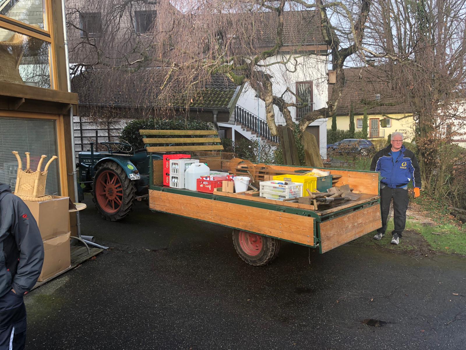Kurz nach 14 Uhr ist es geschafft und ein kaltes Getränk ist jetzt angesagt. Jetzt vor dem Sturm aus dem Wald - alles ist abgeladen und wieder betriebsbereit sauber – der kurz danach einsetzende starke Regen tut den Pflanzen jetzt gut.