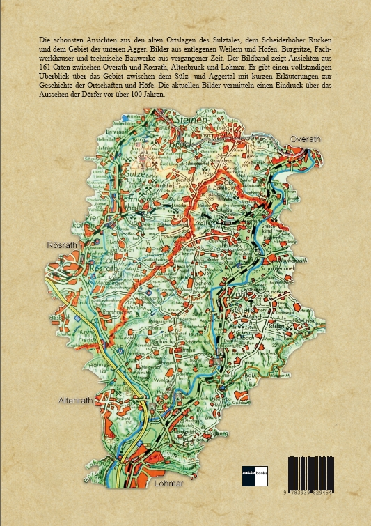 Die schönsten Ansichten aus den alten Ortslagen des Sülztales, dem Scheiderhöher Rücken und dem Gebiet der unteren Agger. Bilder aus entlegenen Weilern und Höfen, Burgsitze, Fachwerkhäuser, und technische Bauwerke aus vergangener Zeit. Der Bildband zeigt Ansichten aus 161 Orten zwischen Overath und Rösrath, Altenbrück und Lohmar. Er gibt einen vollständigen Überblick über das Gebiet zwischen dem Sülz- und Aggertal mit kurzen Erläuterungen zur Geschichte der Dörfer und Höfe. Die aktuellen Bilder vermitteln einen Eindruck über das Aussehen der Dörfer vor 100 Jahren.