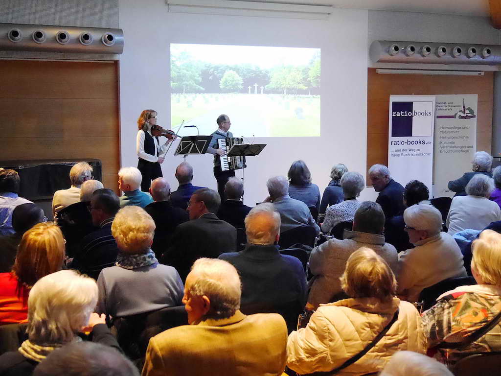 In einem würdigen Rahmen fand vor einem großen Publikum die neueste Präsentation des Heimat- und Geschichtsverein Lohmar statt. Das Buch "Die letzten Kriegstage in der Heimat- Zeitzeugen berichten aus der Zeit vom Ende des zweiten Weltkrieges aus Siegburg, Troisdorf, Seelscheid und Lohmar" zeigt die neueste Ausgabe des HGV und ist ab sofort in den Büchereien zu kaufen. Auf über 320 Seiten mit vielen Abbildungen werden über 50 Zeitzeugen befragt, wie sie die letzten Wochen des zweiten Weltkrieges in ihrer Heimat erlebt und verbracht haben. Mit vielen emotionalen Erinnerungen wird dem Leser diese grausame Zeit vor Augen gehalten.