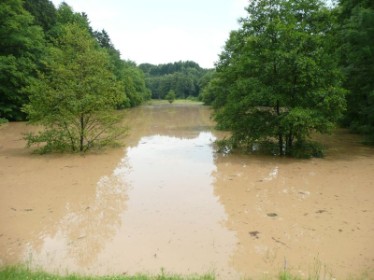 Im Juni gab es in Lohmar leider wieder einen Starkregen, der zahlreiche Straßen und Keller unter Wasser gesetzt hatte (Zeitungsartikel). Die von der Naturschutzgruppe gepflegte Wiese ist in dieser Zeit ein Regenrückhaltebecken und hat ihren Zweck erfüllt, da sie bis zum Rand gefüllt war. Die Bilder entstanden kurz nach dem heftigen Niederschlag.