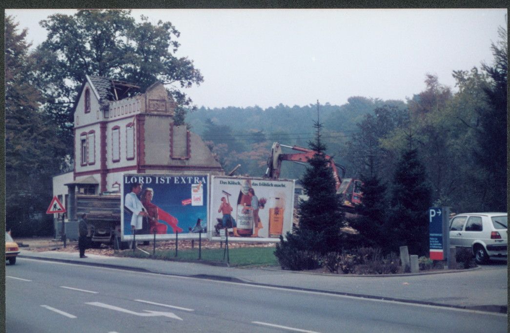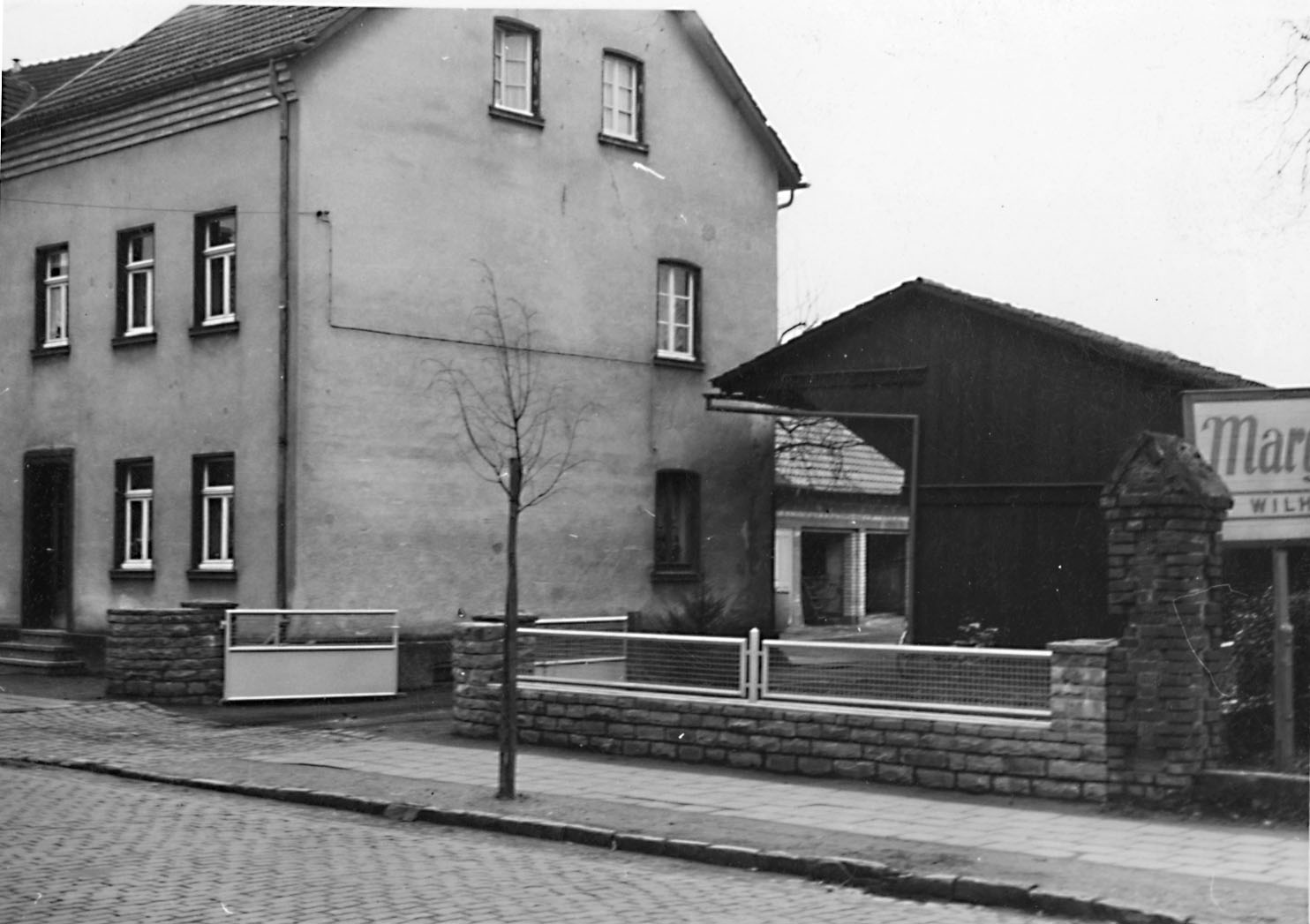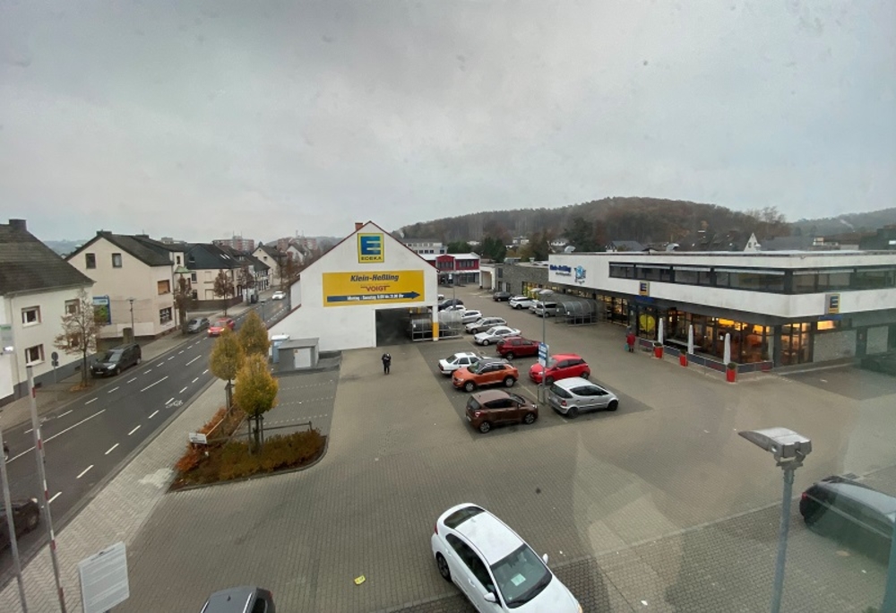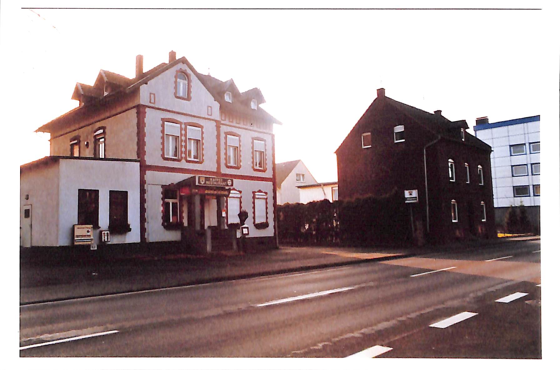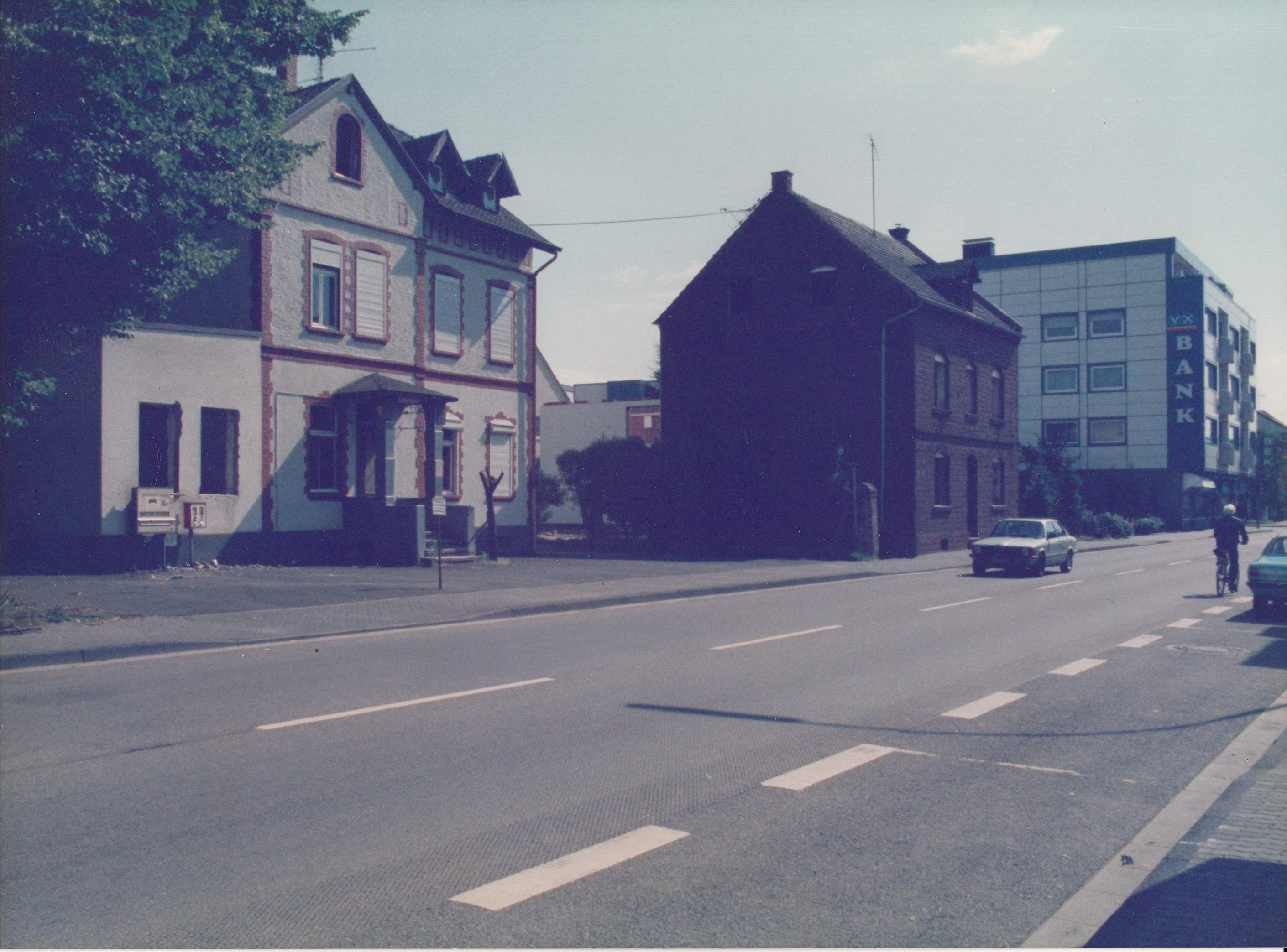 heutige Einfahrt zum EDEKA-Markt, rechts im Bild Gebäuder der VR-Bank