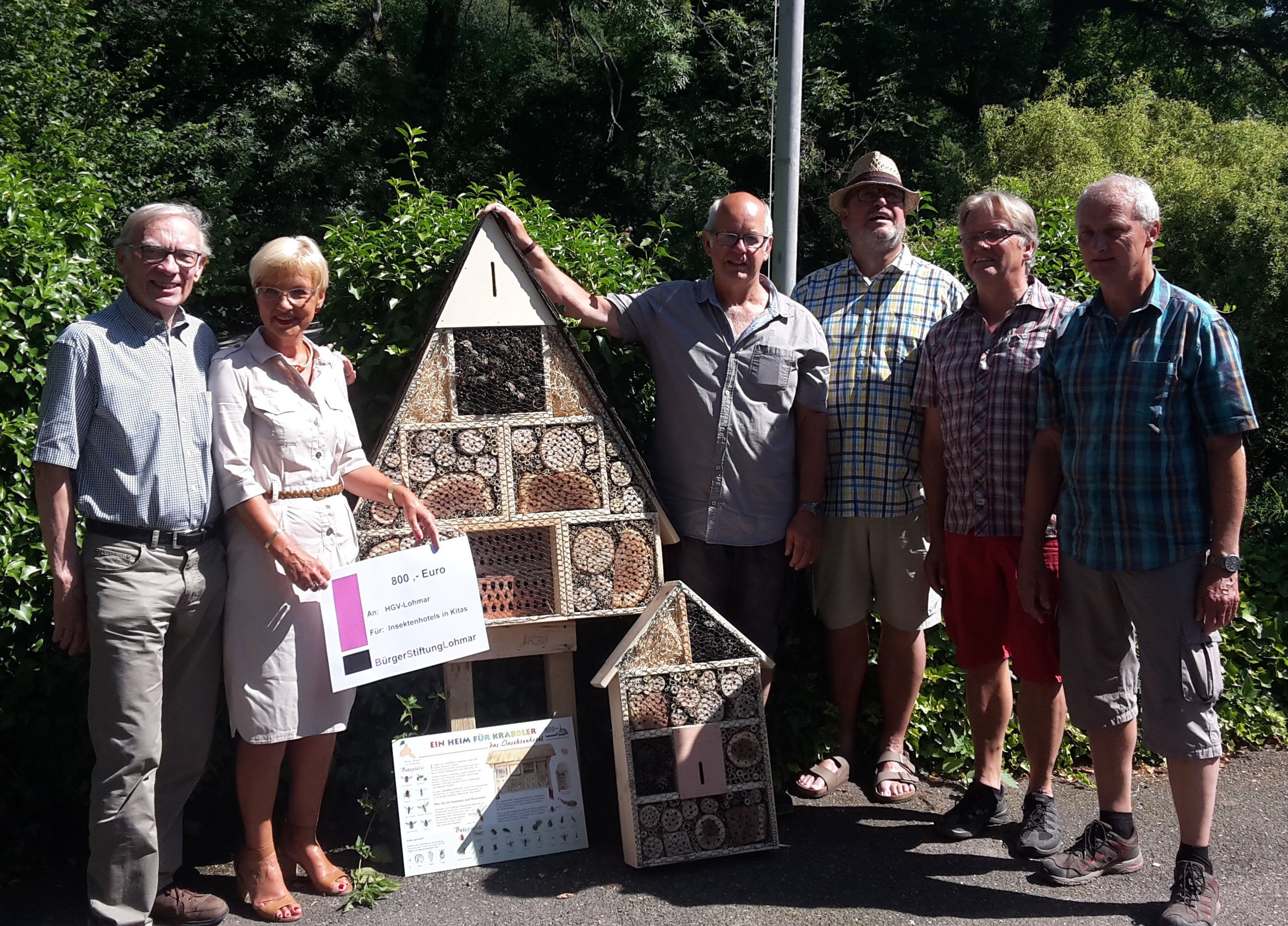 Eine Spende in Höhe von 800,-€ für die Erstellung von Insektenhotels für Lohmarer Kindergärten, erhielt der HGV Fachbereich Heimatpflege und Naturschutz. Ein symbolischer Scheck wurde durch Frau Willscheid und Herr Dr. Bolten an die HGV Bastelfreunde übergeben. Die Spende wird für die Beschaffung von Material und Infotafeln zum Thema Insekten angeschafft. Mittlerweile wurden 8 große Insektenhotels gebaut und in Lohmarer Kindergärten aufgestellt.