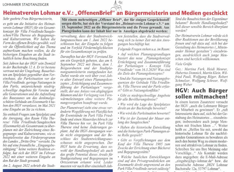 Stadtecho Lohmar, 2. September 2022