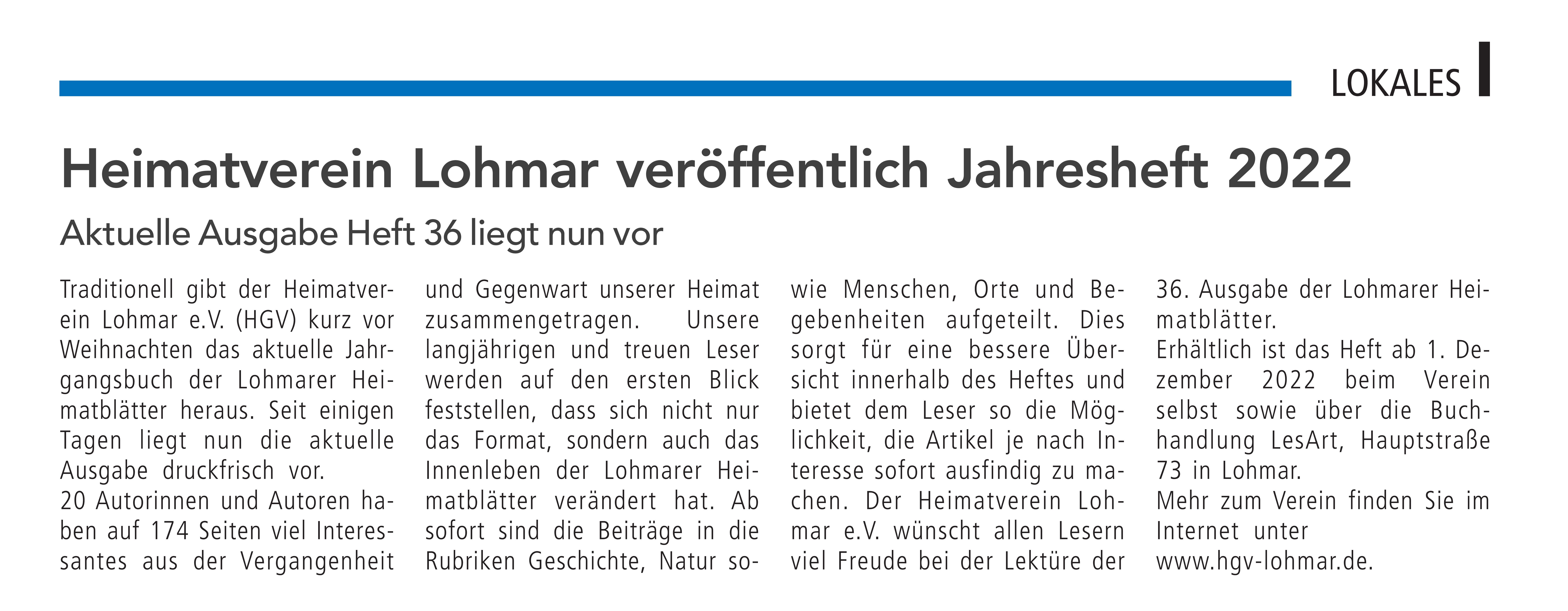 Lohmarer Stadtanzeiger, November 2022