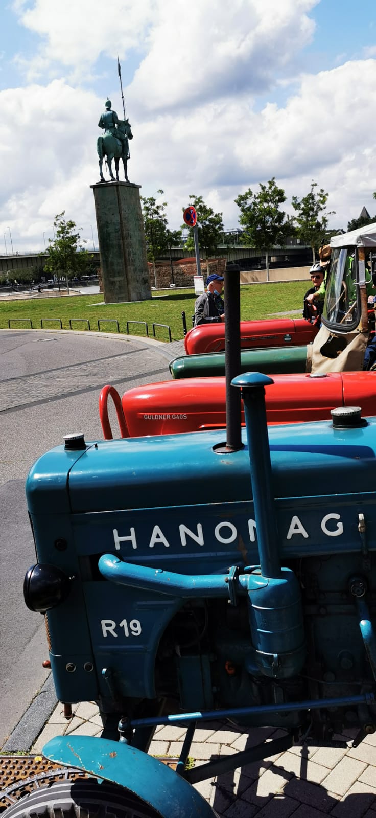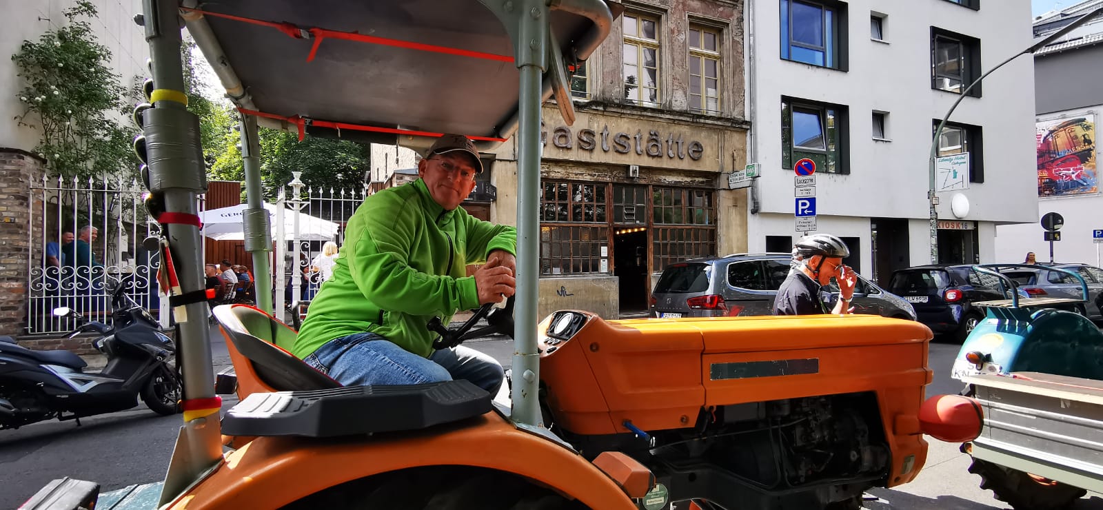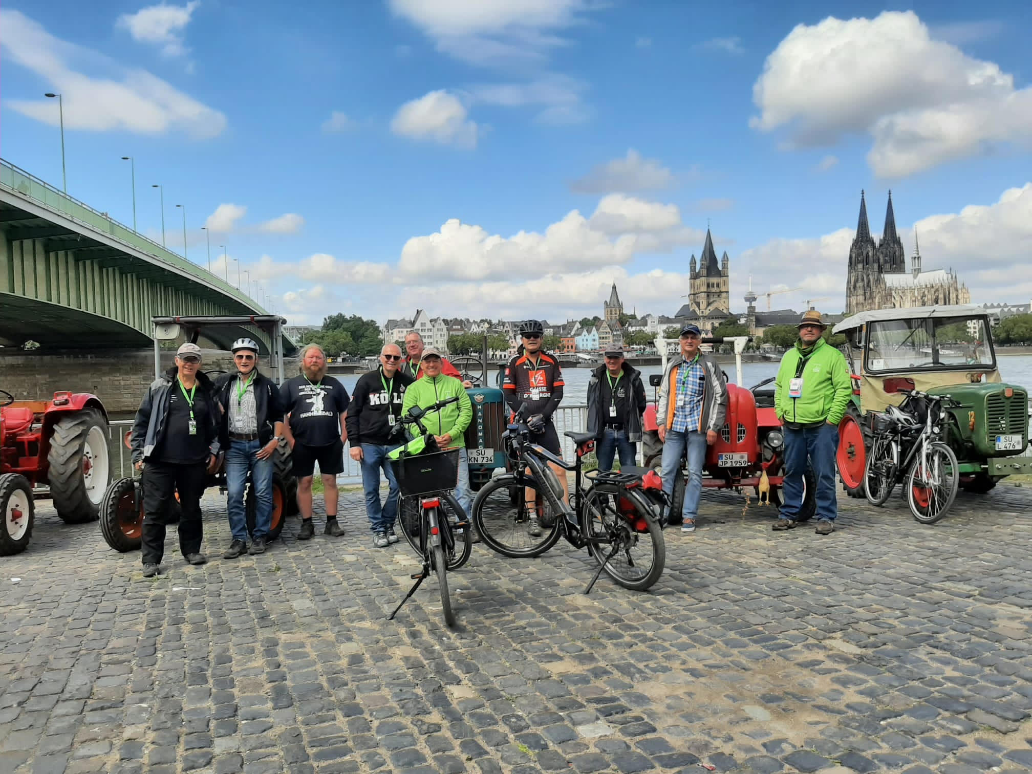 Der Termin war lange im Voraus ausgewählt und wie sich zeigen sollte gut gewählt. Die Coronawerte lassen im Kölner Hafen erstmals wieder eine Kirmes zu ( joht, dat Riesenrädche moht versetzt werden), das Wetter der vergangenen Tage mit Starkregen etc. war gut und – jetz kütt et – Kölns Kneipenkultur (un domit och de Lommi ) hat endlich wieder für den Frühschoppen am Wochenende geöffnet. Ursprünglich nur als vierte Ausfahrt der Traktorfreunde geplant, wurde die Tour kurzfristig um die Ausfahrt „mem Rädche“ erweitert.