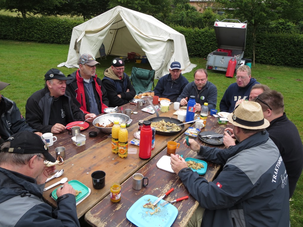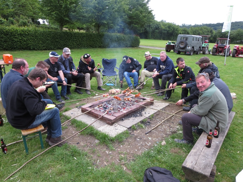 10 Traktoristen mit ihren Traktoren und einige Beifahrer waren unterwegs, um schließlich auf dem Campingplatz in Merten die Zelte aufzuschlagen. Bei schönem, trockenem Wetter wurde wieder kräftig am Lagerfeuer gegrillt. Nach einem ausgiebigen Frühstück am Sonntagmorgen ging es über die Stadt Blankenberg; Alt Bödingen; Seligental zurück nach Lohmar. Alle, auch die Traktoren, haben die Tour sehr gut überstanden.