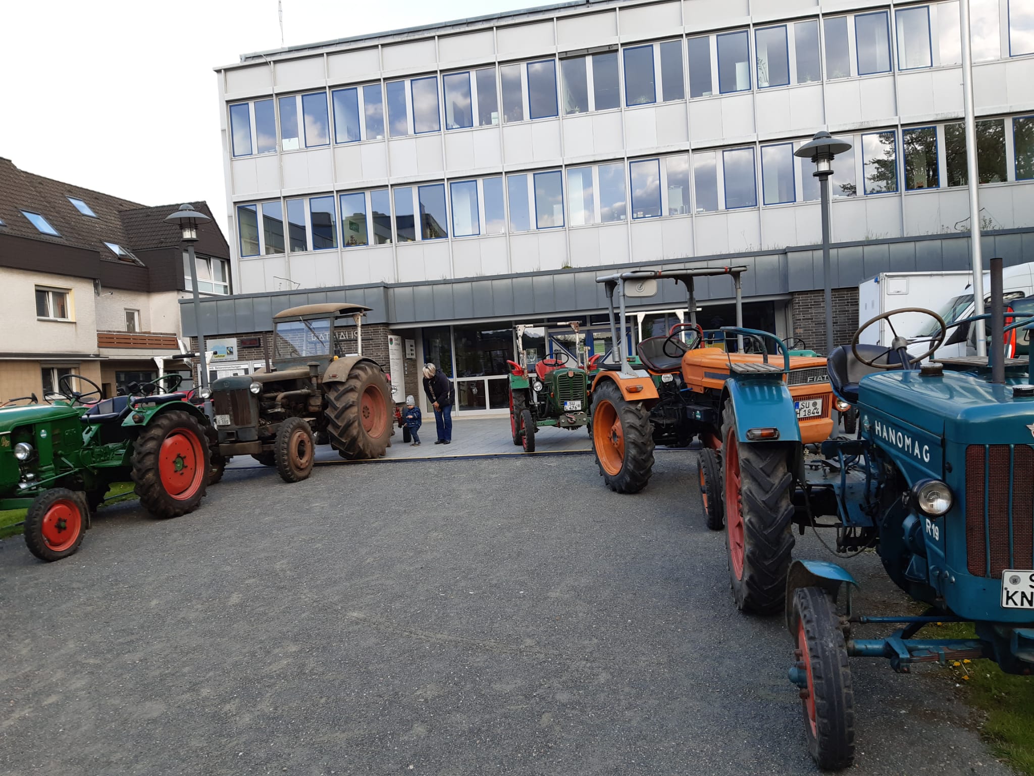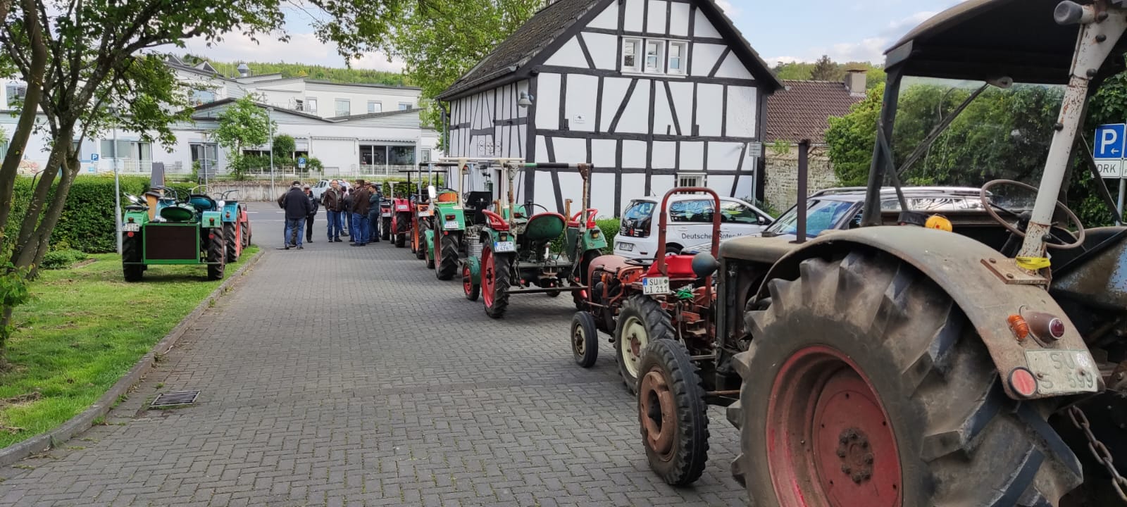 Vom kleinen Krieger KS 20 bis zum Hanomag R35/45: Alle waren angemeldet; dann fallen wegen defektem Wasserschlauch und Luft in der Dieselleitung zwei Traktoren kurzfristig aus. Auf dem restlichen Dutzend Traktoren machen sich 20 Fahrer und Beifahrer/innen auf die Tour. Bei der Aufstellung des Maibaums vor dem Lohmarer Rathaus am 30. April 2022 ging es zur Freude und unter großem Beifall der Gäste des Vereinskomitees mit lautem Hupen ab in den Kreisel zur Ehrenrunde. Im Rahmen des Maibaumsetzens erhielt Axel Strickroth für sein großes ehrenamtliches Engagement die Auszeichnung „Ein Lohmarer“ für 2022 und durfte dabei als Beifahrer bis zum Rathaus mitfahren.
