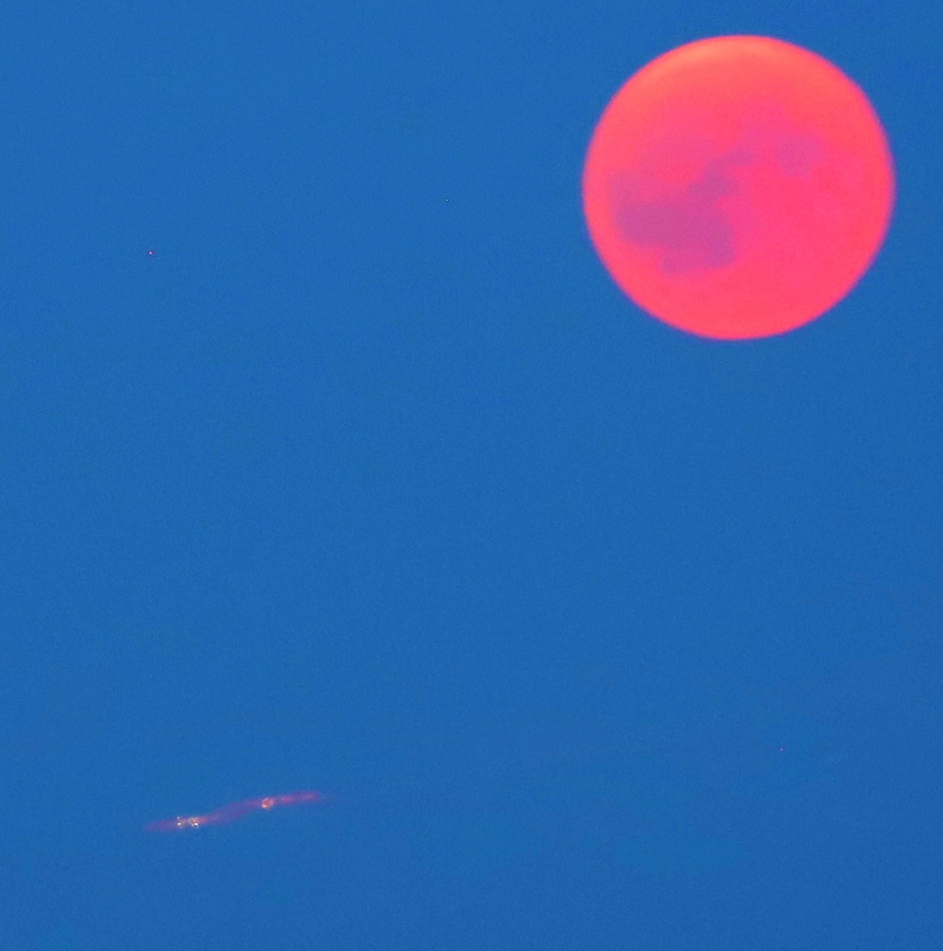 Das Astronomie-Ereignis des Jahres: Die längste totale Mondfinsternis des Jahrhunderts hat am Freitagabend für einen Blutmond am Himmel gesorgt. Die totale Phase der Mondfinsternis endete etwa um 23.13 Uhr, nach 104 Minuten. Diese Dauer wird erst am 9. Juni 2123 übertroffen, wenn die Mondfinsternis sogar zwei Minuten länger anhält. Die hier gezeigte Aufnahme des Blutmondes mit der ISS im Bild ist in Lohmar Inger entstanden und wurde von unserem Deutz Fahrer Hans geschossen.