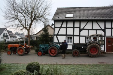 Als Geheimtipp für kälteresistente Traktoristen gilt das Tarktorentreffen in Siegburg auf der Zange, was durch die Schlepperfreunde Siegburg jedes Jahr im November ausgerichtet wird. Dieses Mal sammelten wir uns vor dem HGV Haus. Von dort ging die Fahrt durch den Lohmarer Wald und Siegburger Innenstadt zum Festplatz in den Stadtteil Zange, Nähe IC Bahnhof. An die 160 Oldtimer Traktoren und Unimogs sorgten auch in diesem Jahr für eine sehr breite Palette von unterschiedlichen Marken und Baureihen. Leider wurde die im Vorfeld angekündigte Korsofahrt durch die Innenstadt kurzfristig abgesagt, was nicht nur in unserer Gruppe für leichte Enttäuschung sorgte. Aber mit dem Anblick von den Zahlreichen sehr alten Boliden wurde man mehr als entschädigt. Einen Preis für „bester Originalzustand“ hat Jens Pilgram mit seinem Hanomag R35/45 erzielt.