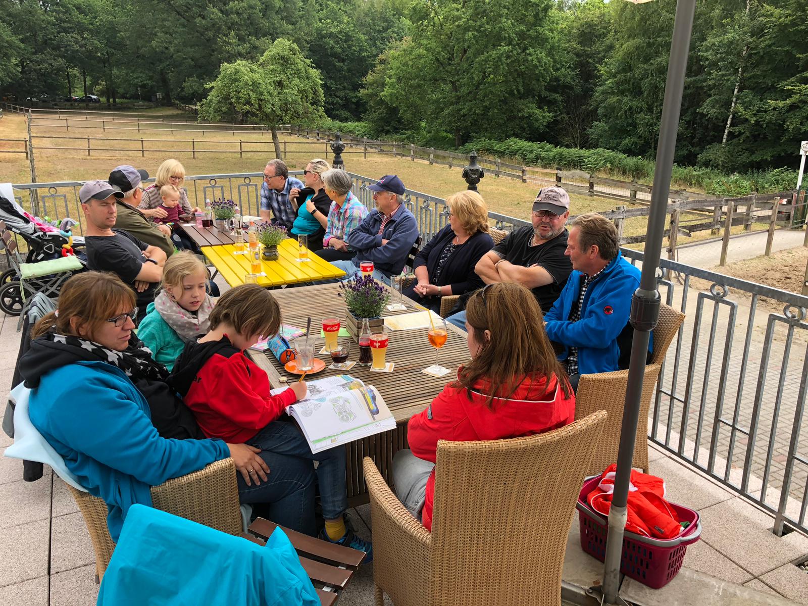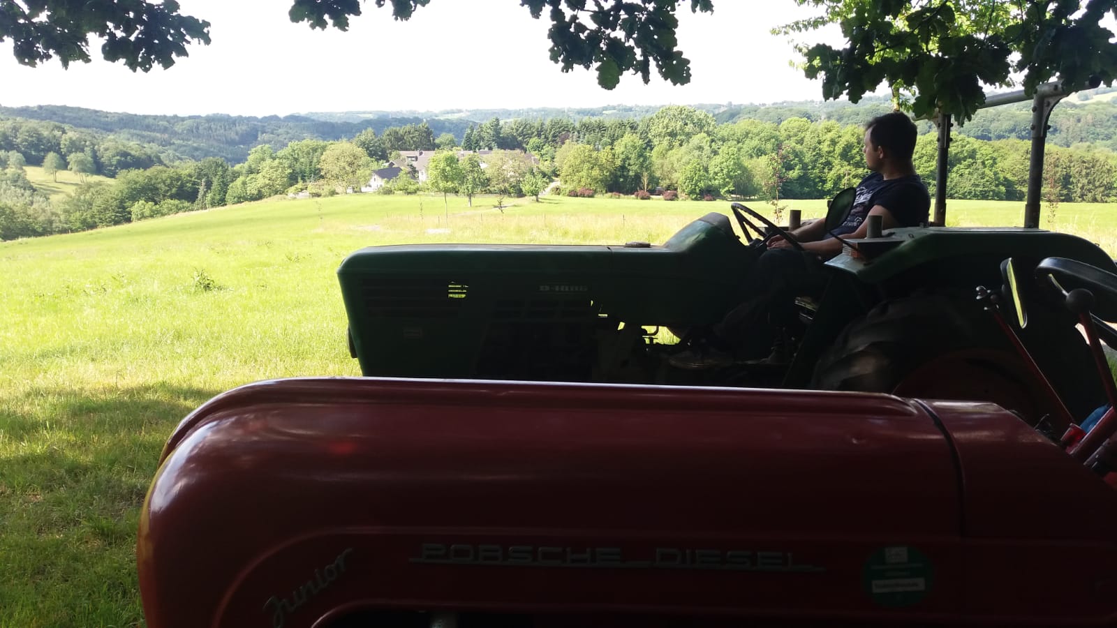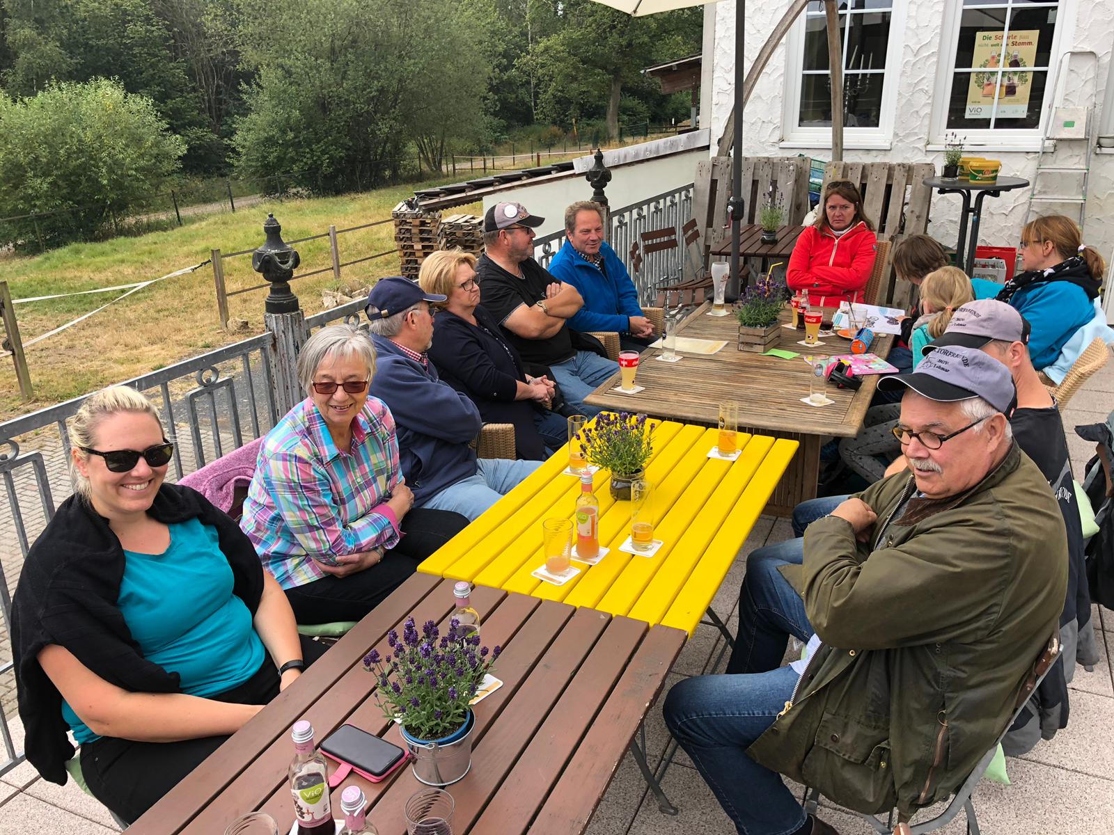 Nach dem Sommerfest stand schnell fest- eine Fahrt mit Familie und Freunden fehlt uns noch. Das Ziel hatten Daniel und Wolfgang zuvor bereits erkundet – es soll zum Camping Paul gehen. Die Strecke dorthin führt uns an der Burg in Lohmar vorbei über Meigermühle und Feienberg, Scheid, Stumpf und Birken. Jetzt am Schloss Auel vorbei über die B 484 nach Neuhohnrath und dann durch Hohnenberg nach Kern. Mit unseren 6 Traktoren und zu 12 Personen erreichen wir Mitte Juli den Camping Paul für eine kurze Pause. Nach der notwendigen Erfrischung geht es zurück über Holl, Höffen, Hausen, Naaferberg, Ellhausen, Halberg. Um 14 Uhr erwarten uns dort schon 6 weitere Personen zum gemeinsamen Abschluss in Haus Waldeck. Gemeinsam gegessen und geklönt…die nächsten Touren angesprochen…