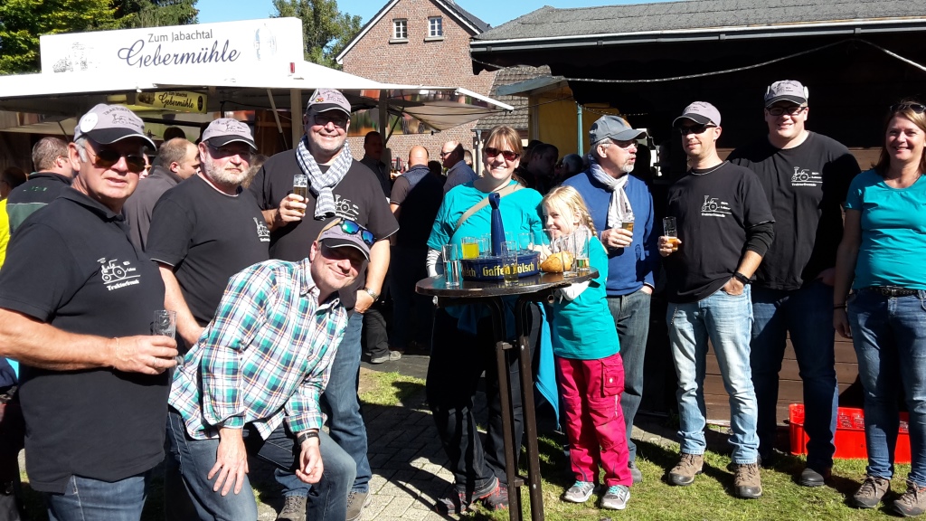 Sieben Traktorfreunde treffen sich gutgelaunt mit fünf Beifahrerrinnen und Beifahrern am HGV Haus zur Abfahrt. Kurz vor 11:00Uhr treffen wir in Breidt bei den Gastgebern Drach op de Aas als eine der ersten größeren Gruppen ein und können so das Eintreffen weiterer Gäste beobachten.
