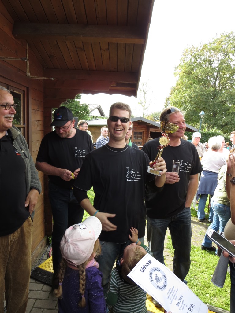 Das sich die Fahrt gelohnt hat zeigt die Überreichung eines Pokals an Thomas Stark für seinen Schlepper Fahr D90. Dieser wurde für den besten Kleinschlepper Originalzustand ausgezeichnet.