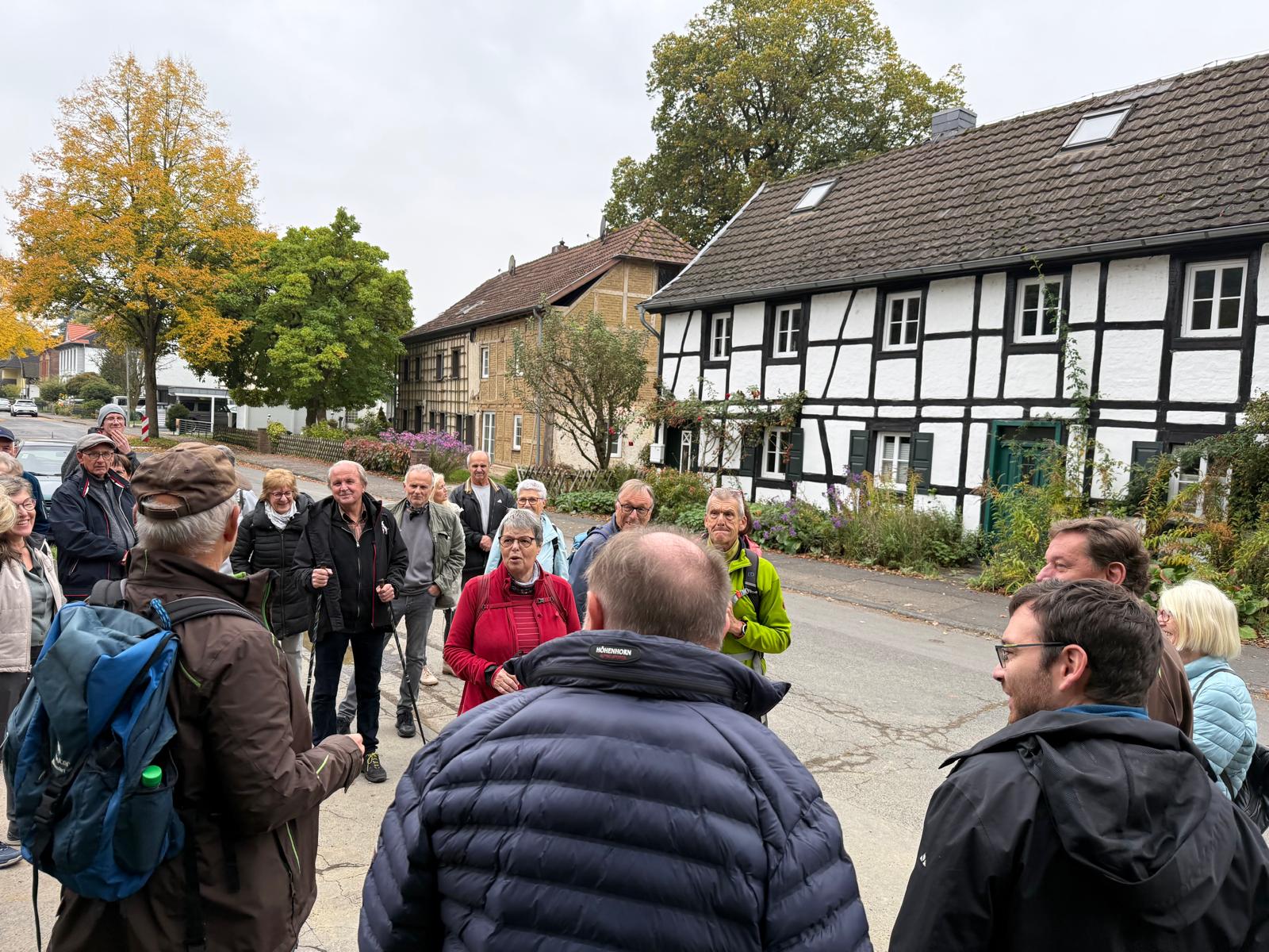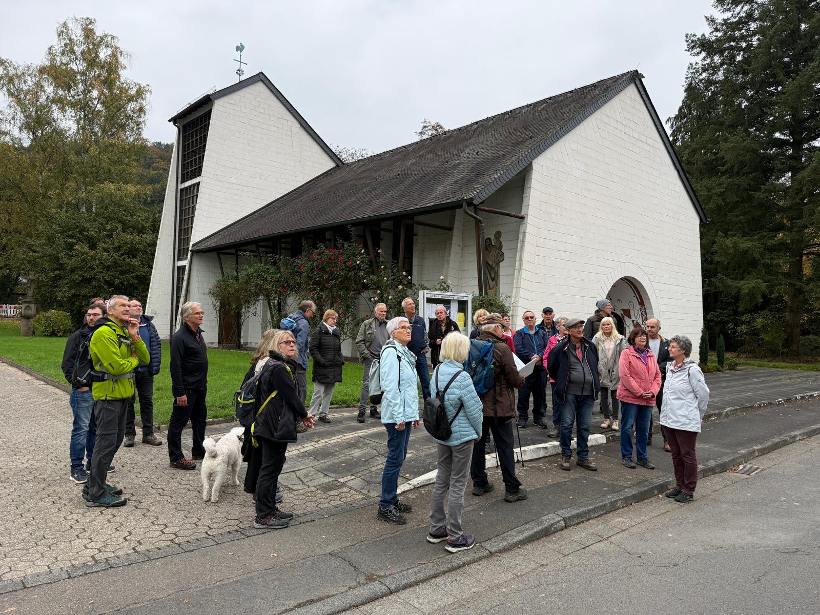 Am Sonntag, dem 12. Oktober 2025 wanderten 30 Teilnehmer eine - von Wolfgang Weber neu ausgearbeitete - Wanderstrecke von Lohmar über Donrath, Höngen, Halberg, Weegen wieder zurück nach Lohmar. Gemäß dem Motto „Wir lernen unsere Heimat kennen…Landschaft, Natur, Sehenswertes, Historisches“ erfuhren die Wanderer viel Neues, wie zum Beispiel Geschichtliches über die alte 5-bogige Steinbrücke in Donrath, das Hotel Aggerburg, die Kapelle Halberg, den Vogtshof und vieles mehr.